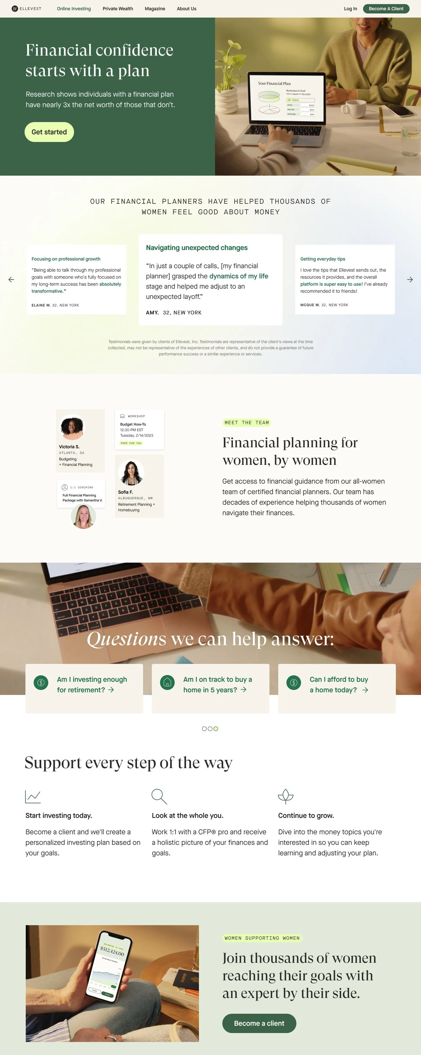 Working with Ellevest transformed the way I look at money. I worked on web page tests, social, and email campaigns to help women with a no-bullshit approach to finances.