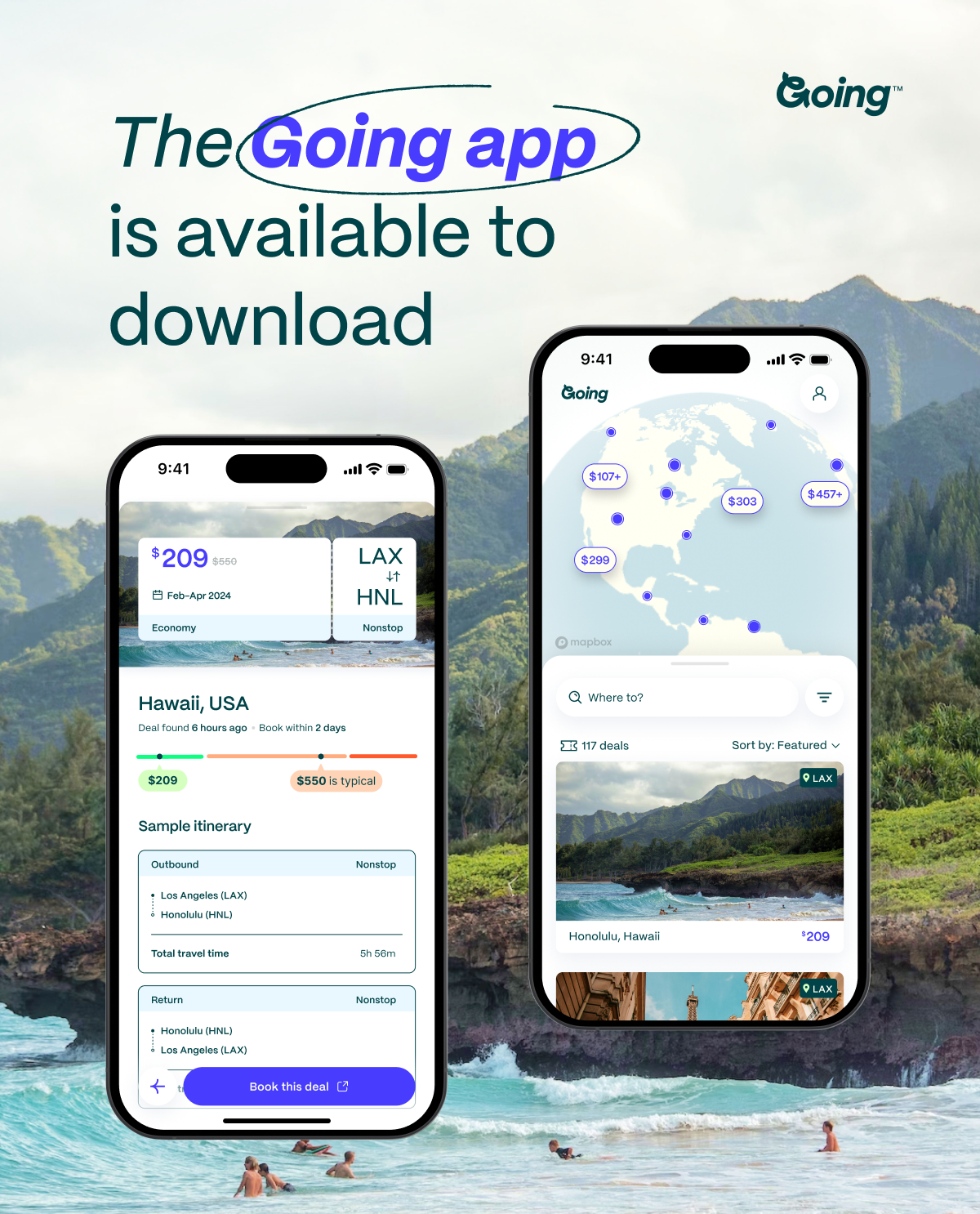 In 2024, Going launched a mobile app helping users take more vacations. I was the copywriter on both the mobile app UX and marketing campaign.